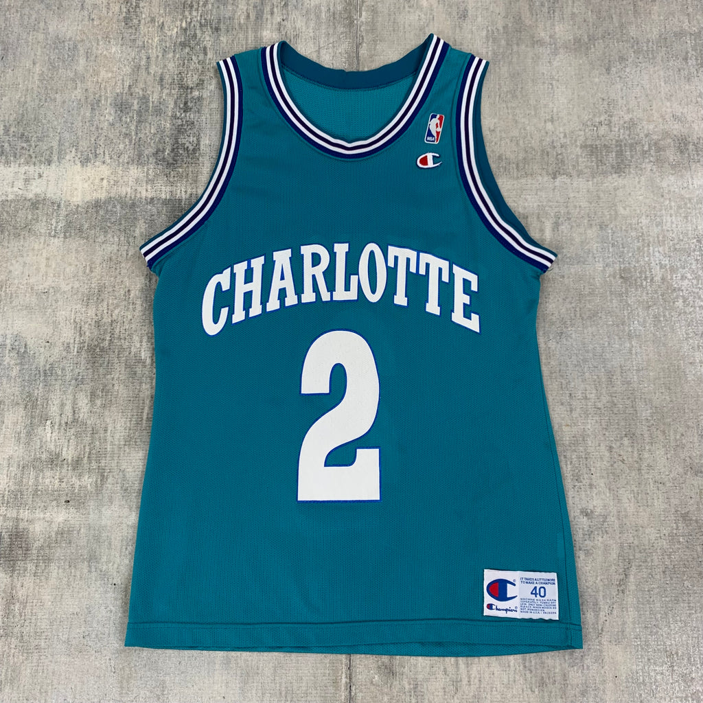 Vintage Champion Charlotte Hornets Larry Johnson Basketball Jersey (M)